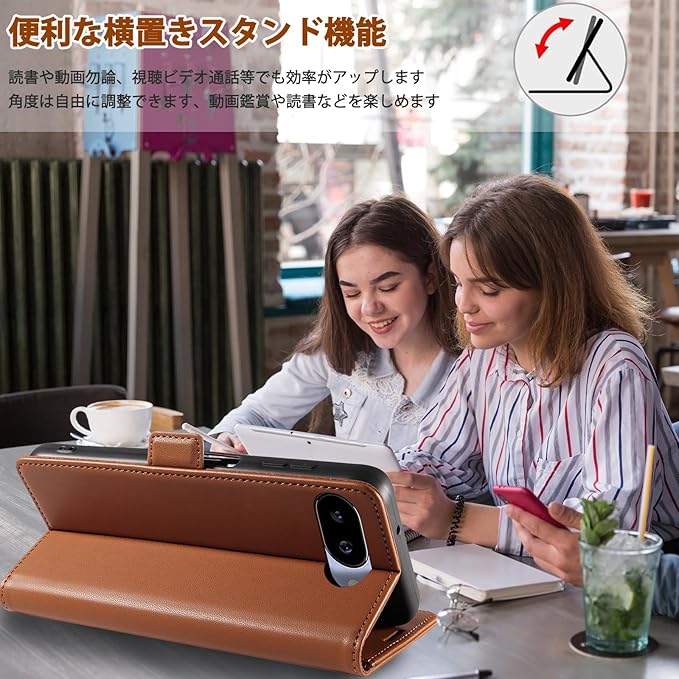 5.【横置きスタンド機能】Google Pixel 9a 対応ケースの背面から折り曲げて、横置きのスタントとして活用し、バランスがよくスマホをしっかり支えて、読書や動画勿論、視聴ビデオ通話等でも効率がアップします。横置きスタンド機能た付いて、お好きな角度で動画鑑賞や読書などを楽しめます。