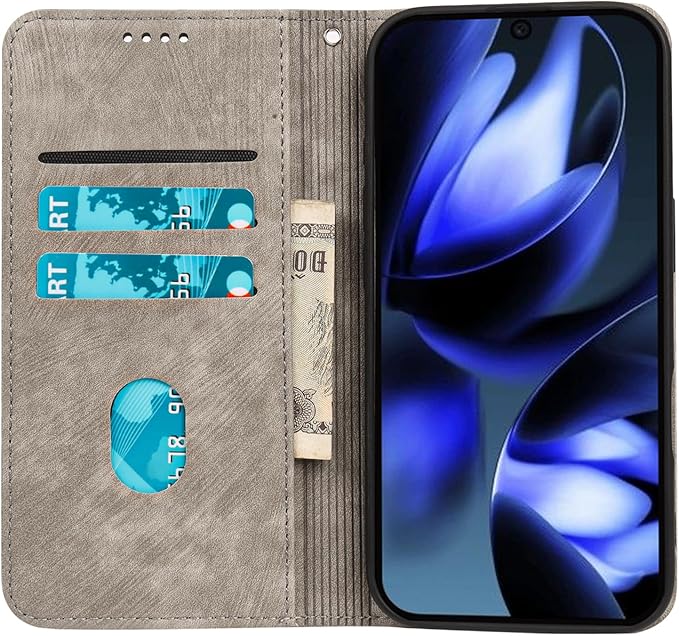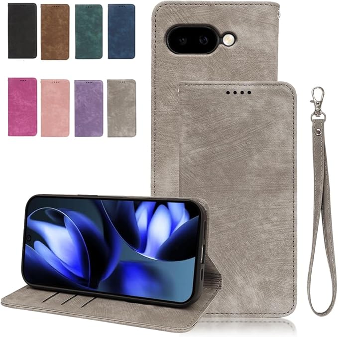For Google Pixel 9A 用 ケース 手帳型 ストラップ カバー PUレザー カード収納 財布型 マグネット スタンド機能付き 8色オプション [耐衝撃] [柔軟TPU] [ソフトタッチ] [レンズの全面保護] [指紋防止] [落下防止] [滑り防止]-9A グレー | KAZESHOP