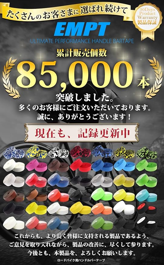 累計販売本数92,000本突破!非常に多くのサイクリストの方にご愛用頂いています。種類豊富で様々なデザインで好みのバーテープが見つかる!EMPT ロードバイク用ハンドルバーテープ