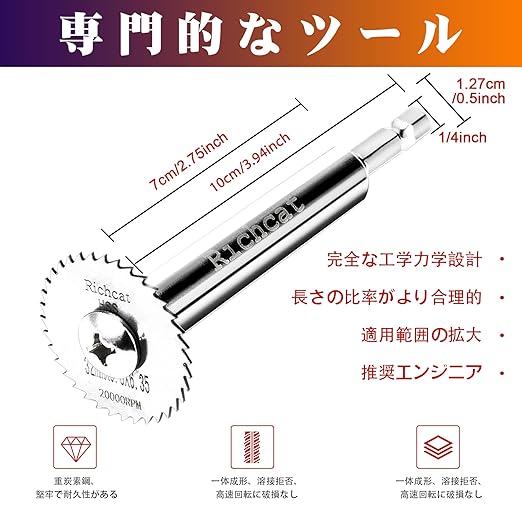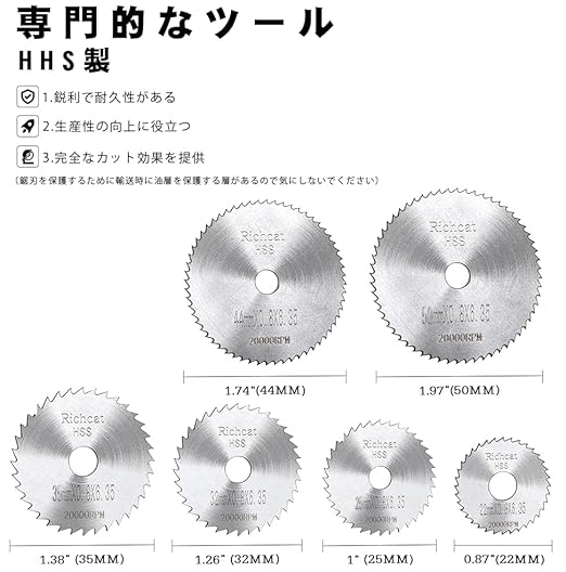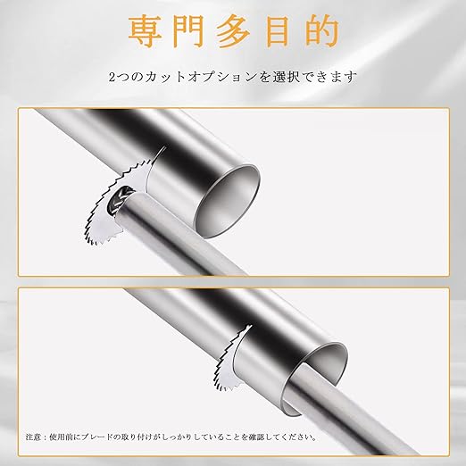 【パッケージ内容】パイプカッターセット、6つの鋸刃(直径0.87インチ(22MM)の鋸刃1個、直径1インチ(25MM)の鋸刃1個、直径1.25インチ(32MM)の鋸刃1個、直径1.38インチ(35MM)の鋸刃1個と直径1.75インチ(44MM)の刃1個と直径1.97インチ(50MM)の刃1個)と1セットのネジ締結具を備えている。鋸刃を保護ために、鋸の刃には保護油が積まれて、気にしないで。Webページには使用動画があります。