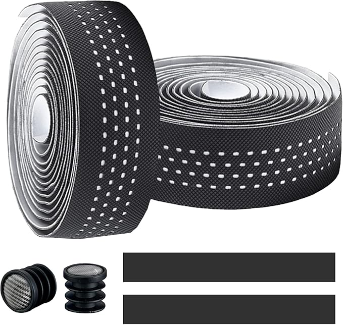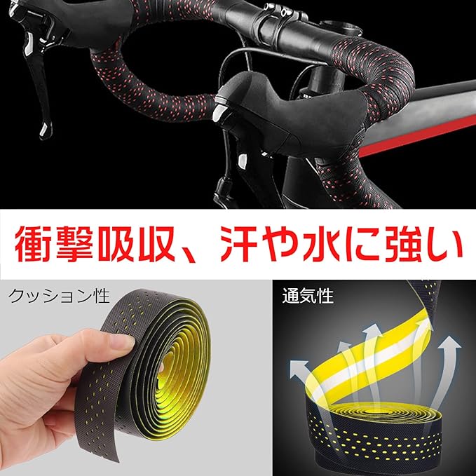 【高品質な素材・グリップ力抜群】 定番のEVA素材をベースに、上側にPU素材を採用し、菱形ハイグリップ加工やパンチング加工を施したロードバイクバーテープなので、適当なクッション性と優れた操作性を発揮します。軽量ながら伸縮性が良く、耐久性にも優れており、表面滑り止め加工を施したバーテープは、高いバランス性を提供し、自転車の乗り心地を向上させ、グリップ力抜群です。