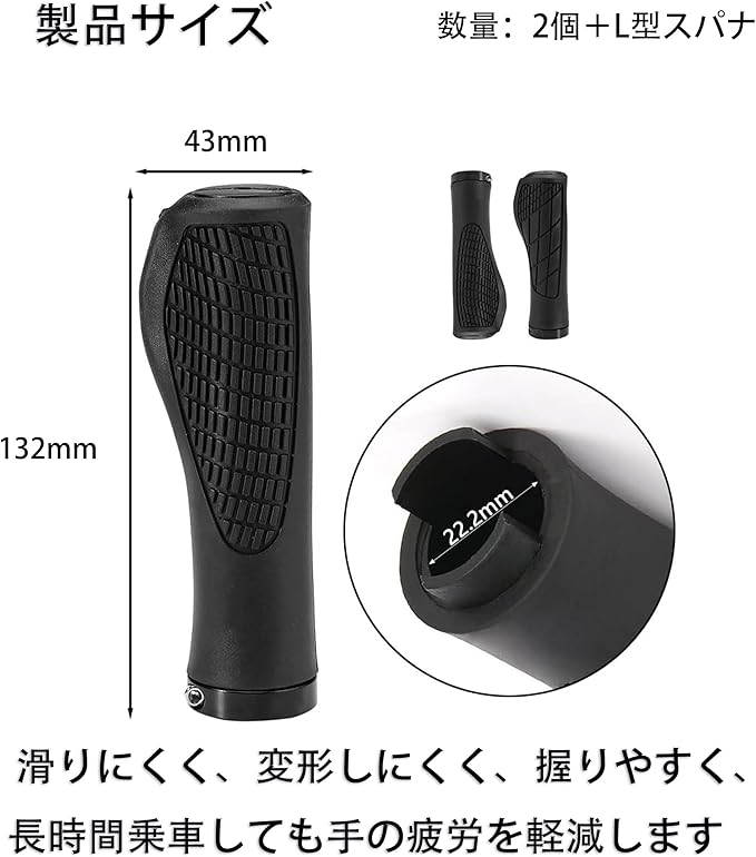 1.【汎用性抜群】132mmの長さと22.2mm内径のハンドルグリップ。クロスバイクやマウンテンバイクを含むほとんどの自転車タイプに適合する優れた互換性を実現。六角スパナ付属で簡単取り付け可能。