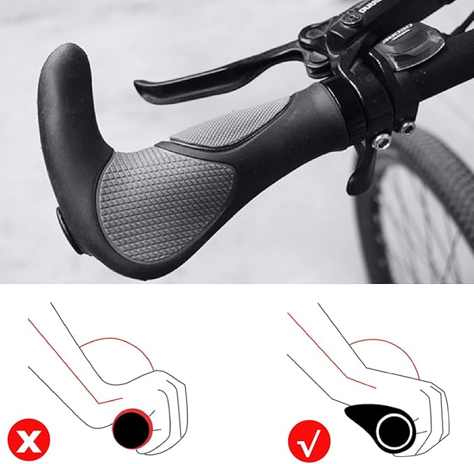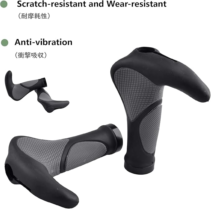 【滑り止め】- 吸震の能力が強く、長い距離のサイクリングでも、手が痛くなりません。プラスチックではなく、TPR天然ゴムが素材ですので、汗や雨に濡れても、滑り落ちることはありません。