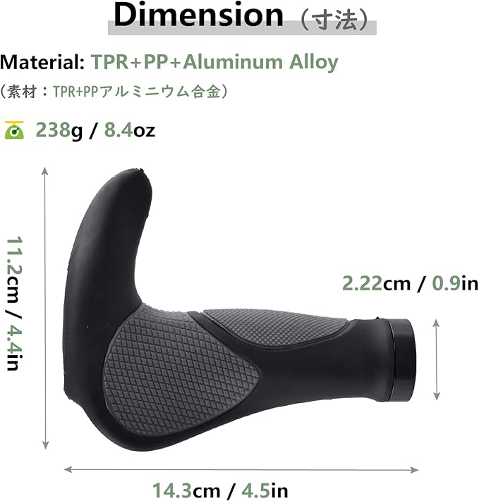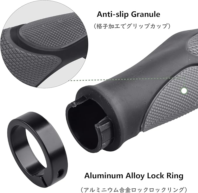 【衝撃吸収】自転車グリップはTPR、PP、アルミ合金の材質で作れられ、クッション性が高くて優れた衝撃吸収性能もあります。表面に滑り止め加工で、スリップ防止です