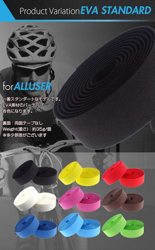 バーテープに最適なEVAを使用、軽量、耐久性に優れており過酷な環境下での使用でも劣化しづらい特徴もあります。適度なクッション性・弾力性があり、長時間走行時も快適な走行をサポートします。