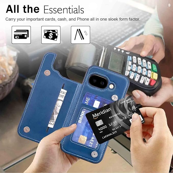 【OULO1】対応 GOOGLE PIXEL 9A ケース pixel9a レザー 手帳型 ケース ピクセル9A カード収納 スタンド機能 携帯 ケース(ネイビーブルー)グーグル ピクセル9A 軽量 薄い 背面 IC カード入れ スマホケース 財布型 カバー Pixel 9a BLUE | KAZESHOP