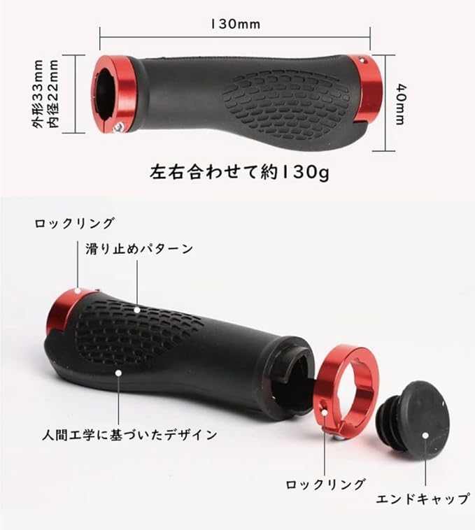 重量:左右合わせて約130g サイズ:長さ13cm 外形33mm(広い部分で40mm) 内径22mm (六角レンチは付属しません)