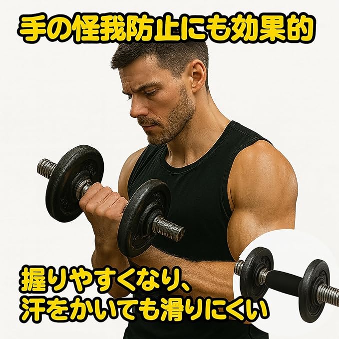 【安定したグリップでトレーニング効率UP】ダンベルやバーベルのバーに巻き付けて使用するグリップカバー。握りやすくなり、汗をかいても滑りにくいため、安定したフォームでトレーニングが行えます