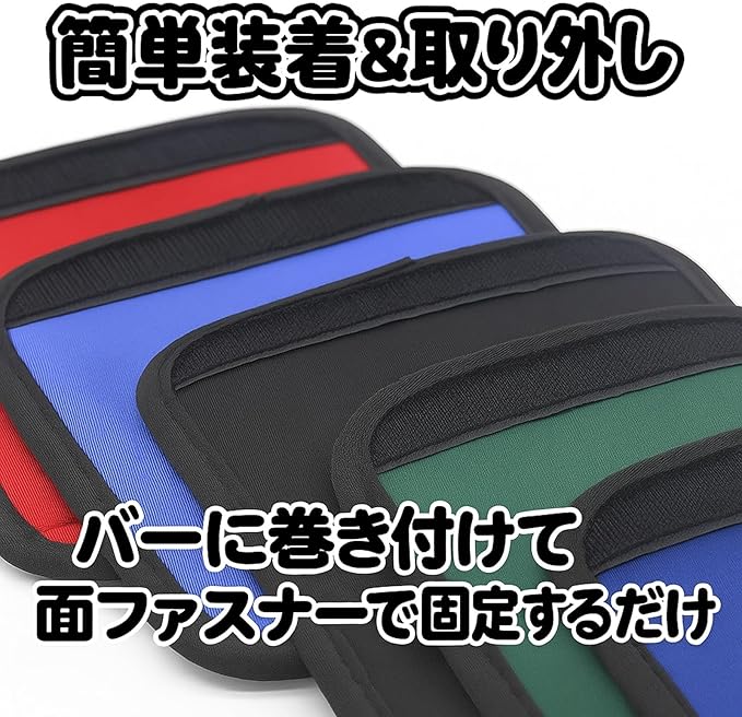 【簡単装着&取り外し】バーに巻き付けて面ファスナーで固定するだけ。取り付けも取り外しも簡単で、準備や片付けに時間を取られません<