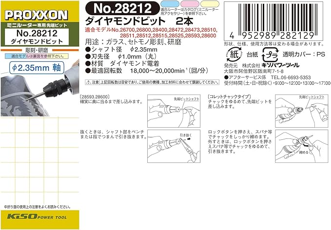 ミニルーター用ダイヤモンドビット、ガラス、セトモノ、金属の切削、研磨に最適です。