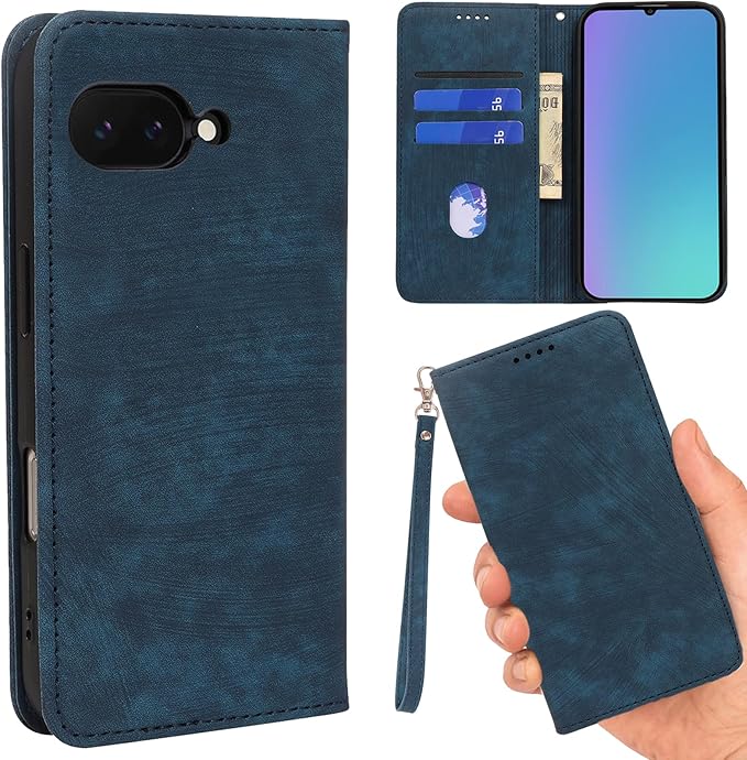 【WenziLior】 Google Pixel9A 用 ケース 手帳型 ストラップ レザーケース 適用 Google Pixel 9A docomo au softbank SIMフリー 携帯カバー グーグル ピクセル 9A 手帳 case ストラップ付き 多機能 マグネット スマホカバー カード入れ カード収納 耐衝撃 シンプル 軽奢風 スマホケース レトロ ネイビー | KAZESHOP