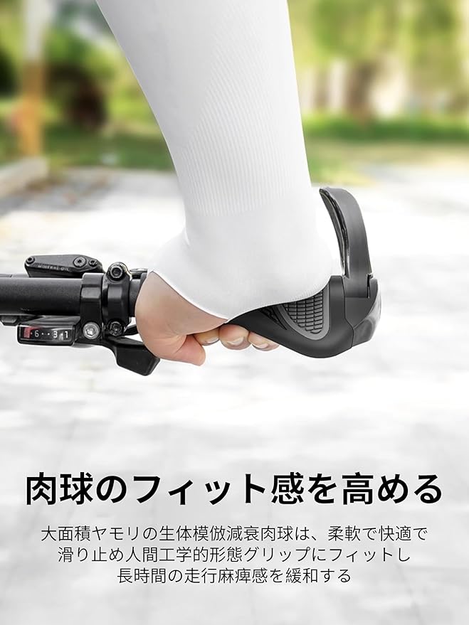 【人体工学的滑り止めパターン設計】:自転車、MTB、BMX、折り畳み式自転車、マウンテンバイク、ロードバイク、ロードバイク。グリップ幅を広くすることで手首部のダメージを減らすことができます。優れた滑り止め性能と衝撃吸収効果を備え、安定した快適な走行体験を提供します。