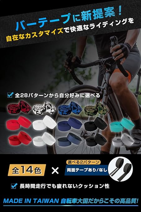 ♂️【自転車大国 台湾製】自転車大国だからこそ、市場のニーズを知り尽くし細かいところにもこだわった高品質な自転車バーテープです。
