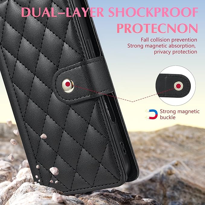 ✿クリエイティブデザイン:Googleピクセル9A ケース ファッショナブルなシャネル風で、フランスの優雅さを表現。内部にはカードスロットがあり、簡単にポータブルな小さな財布に早変わり。日常的に銀行カード、名刺、少量の現金などを持ち歩くニーズを満たします。マグネット式の閉じるデザインで、ほこりや衝撃から守り、安全で安定しています。