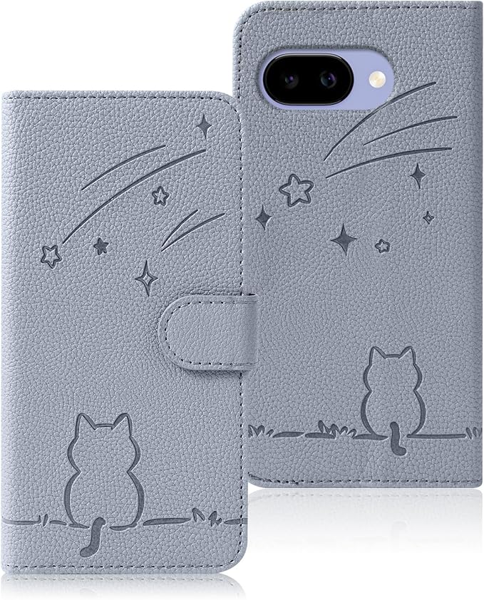 Google Pixel 9a ケース 手帳型 ピクセル9a ケース 手帳型 流れ星子猫 グーグルピクセル9a ケース 可愛い 猫柄 Pixel9a ケース 財布型 耐衝撃 携帯カバー カード収納 Google Pixel9a スマホケース オシャレ 軽量 耐久性 Googleピクセル9a ケース スタンド機能 PUレザー 内蔵マグネット 6.29インチ対応(グレー) | KAZESHOP