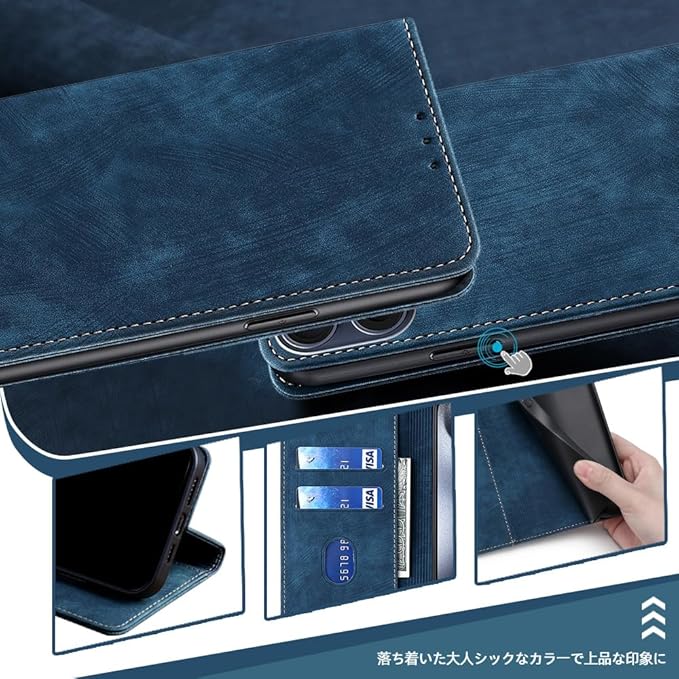 【多機能】レザーケースには、お金、銀行カード、トランジットカード、極小カードを収納できるカードスロット2つとサイドポケット1つが付いています。 スタンド機能は両方とも折り畳み使用でき、最適な角度が自由に調整でき(特殊スタンドデザインなので、背面に折り目を見せない)、いつでもドラマ動画などを楽しもう!