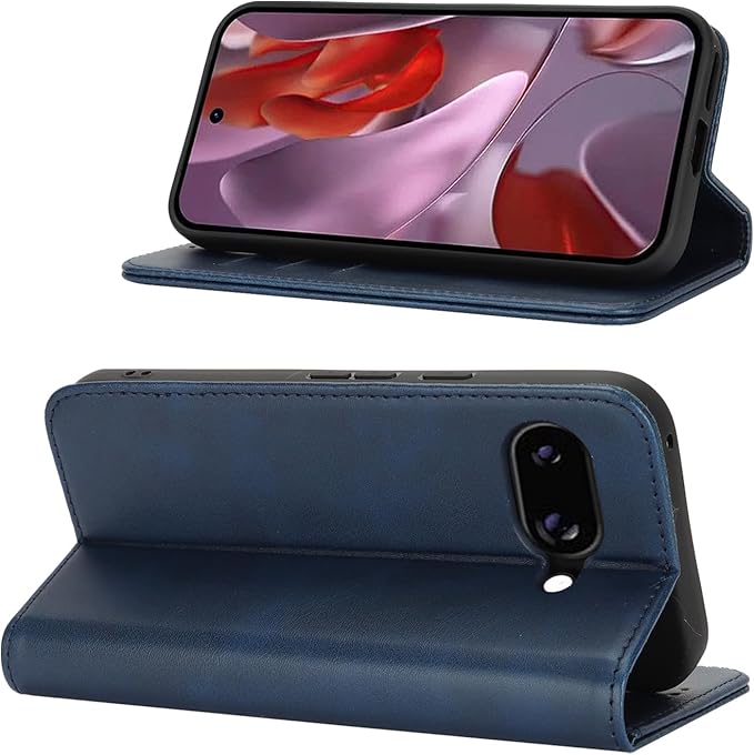 Pelanty for Pixel 9A 手帳型ケース for Google Pixel9a 携帯カバー レトロ 合成皮革+TPU 内蔵マグネット 財布型カバー カードポケット 収納ポケット 横置きスタンド機能 グーグル ピクセル9a スマホケース 汗や指紋防止 軽量薄型 耐衝撃 耐摩擦 着脱しやすい ブルー | KAZESHOP