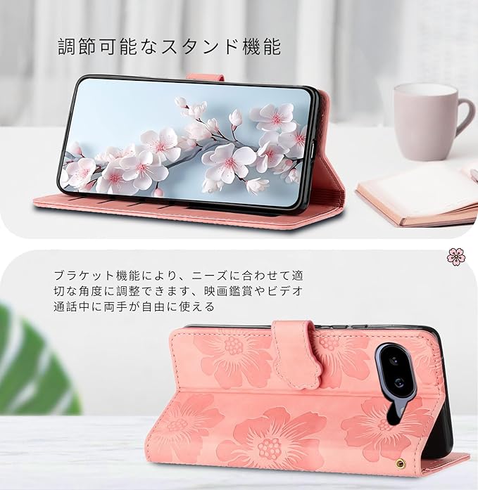 Google Pixel 9aケース 手帳型 グーグルピクセ9aケース 美しい桜の柄 Pixel9aカバー 財布型 高級PU レザー Google Pixel 9a カバー カード収納 スタンド機能 Google pixel 9a スマホケース手帳型 花柄 マグネット開閉式 (リストストラップ付き)【ピンク】 | KAZESHOP