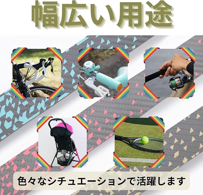 ✅【幅広い用途で多機能なバーテープ】適用範囲: 一般の自転車、ロードバイク、マウンテンバイクだけでなく、ベビーカーや釣り竿、スポーツラケットなどにも使用可能。6色から選べるので、お好みに合わせてカスタマイズできます。