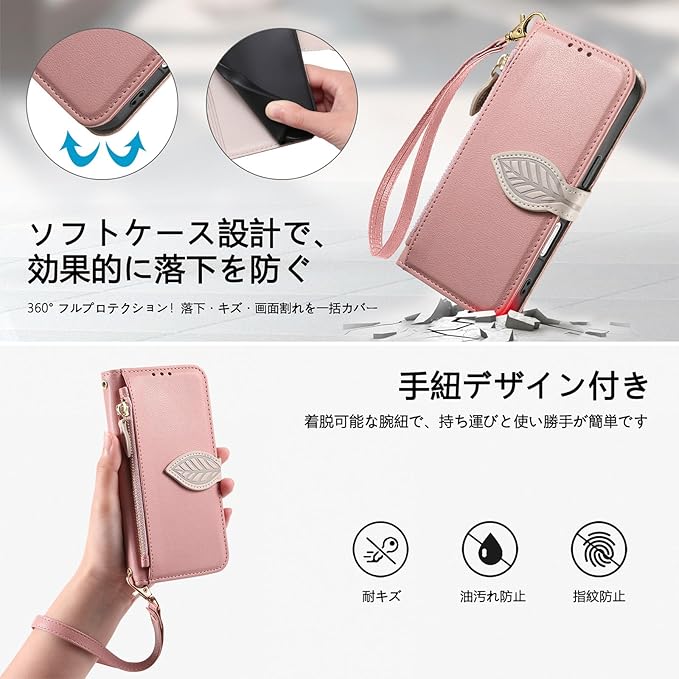 スタンド機能とマグネット機能: Pixel9a ケース 手帳型 ショルダー は水平スタンド機能を備えており、お好みの角度で動画視聴や読書が楽しめます。手持ち不要で、長時間でも快適にご利用いただけます。外側は高品質PUレザーとリーフデザインのマグネットベルトを採用し、内側には衝撃吸収性に優れたTPU素材を使用。Googleピクセル9a ケース 手帳型 はデバイスを総合的に保護するだけでなく、耐摩耗性と防水性も備え、使い心地も快適でデザインも優れています