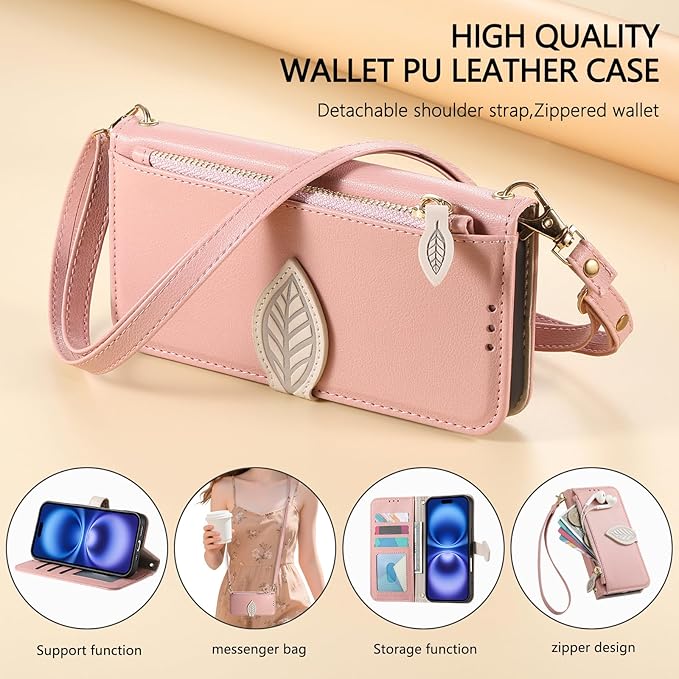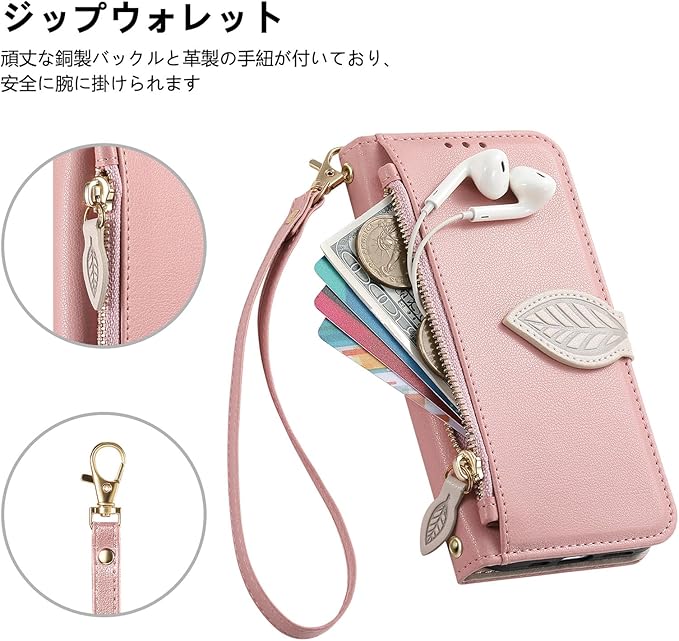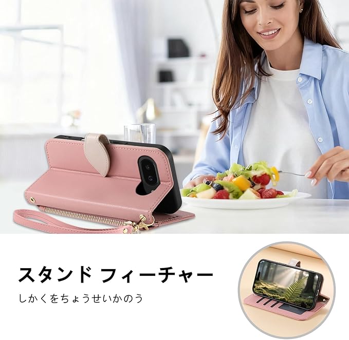 For Google Pixel 9A ケース 手帳型 グーグルピクセル9A ケース ショルダー Pixel9A カード収納 小銭入れ ジッパー式 ピクセル9a 財布型 スタンド機能 ストラップ付き スマホケース Googleピクセル9A カバー 大容量収納 マグネット式 全面保護 高級PUレザー 防指紋 高耐久性 ぐーくるぴくせる9A 女性用 おしゃれ - ピンク | KAZESHOP