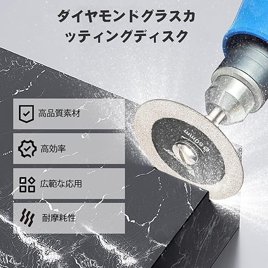 安全なご使用を - ダイヤモンドカッターをご使用の際は、保護メガネと手袋の着用を必須とし、火花や飛散物に十分ご注意ください。リューター工具と組み合わせ、安全かつ効果的にお使いいただけます