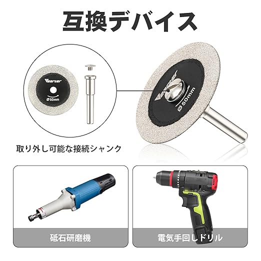ダイヤモンドカッター 直径50mm 5枚入と6mm ラウンドシャンク リューター カッター クォーツストーン、花崗岩、レンガ、大理石用 ダイヤモンドカッティングディスクミニルーター/リューター/ルーター用 | KAZESHOP