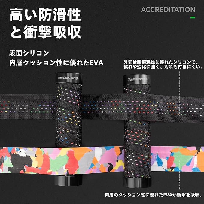ROCKBROS(ロックブロス)自転車 グリップ クロスバイク対応 ロックオン式 シリコン素材 滑り止め 吸汗 快適 レインボーテープ風 22.2mm 六角レンチ付き ハンドルグリップ 黒/白 | KAZESHOP