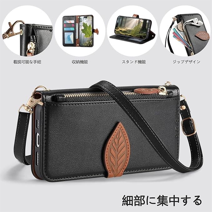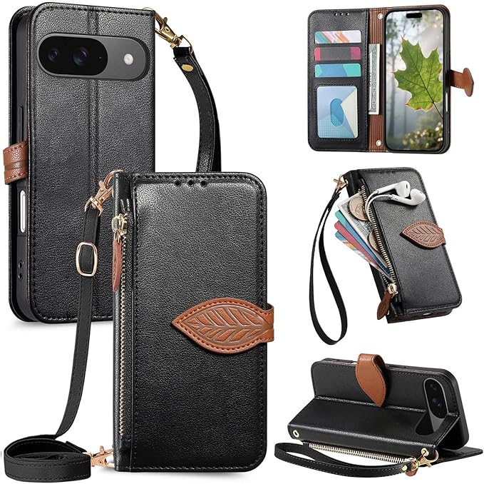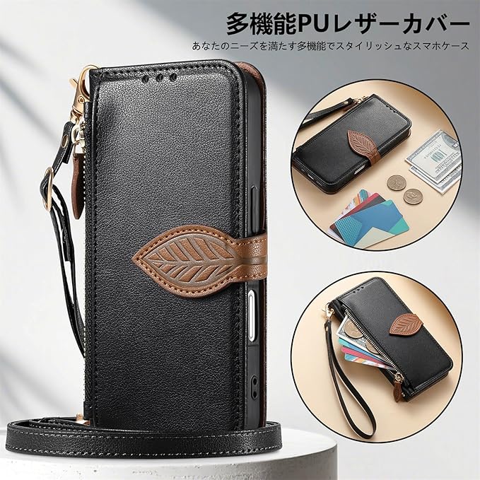 Vokpok対応 Google Pixel 9a ケース 手帳型 ショルダー 強力マルチカード収納 スタンド機能 耐摩擦 全面保護 グーグルピクセル 9A 財布型ケース 肩掛け 斜めがけ 手首かけ、掛けストラップ付き (長さ調整可能) おしゃれ 実用性 ジッパー小銭入れ Pixel 9A スマホケース PUレザー ある滑らかな手触り 贈り物 ピクセル9a ケース, ブラック | KAZESHOP