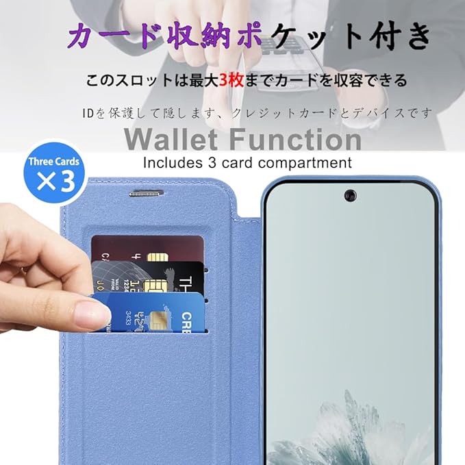 【全面保護】高品質のレザーとソフトTPU保護カバーの組み合わせで、衝撃吸収機能を備え、二重保護で携帯電話を保護します。背面はカメラレンズより高くデザインされているため、スマホを机などに置いてもレンズが直接に接しないようになっております,全面的な保護をもたらす。