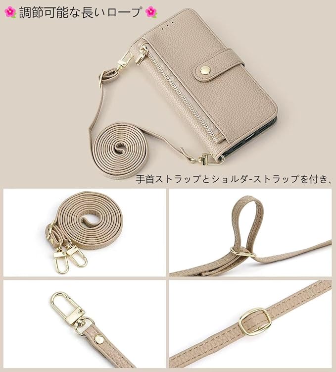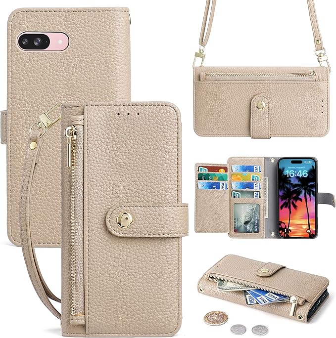 Vokpok対応 Google Pixel 9a ケース 手帳型 ショルダー 強力マルチカード収納 スタンド機能 耐衝撃 全面保護 グーグルピクセル 9A 財布型ケース 肩掛け 斜めがけ 手首かけ、掛けストラップ付き (長さ調整可能) おしゃれ 実用性 ジッパー小銭入れ Pixel 9A スマホケース PUレザー ある滑らかな手触り 贈り物 ピクセル9a ケース, アプリコット | KAZESHOP