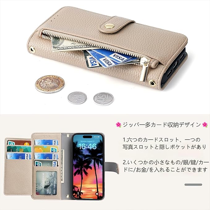 ① き おしゃれ実用性:Google Pixel 9a ケース 手帳型 には斜め肩ベルト、手首ベルト二種類のストラップ付き:▶肩掛けのストラップ 肩掛けのストラップの長さが調整しやすいのです、特にポケットがない服が多いのでストラップ付きなのがとても便利です。お出かけ時はショルダーに、家でゴロゴロする時はご自由に外します。▶ハンドストラップ ハンドストラップを自由に上下ストラップ穴を付ければ、いつでも落下防止できます。②収納力抜群 カード収納が沢山あります:グーグルピクセル9a 財布型 ケース には ジッパー小銭入れ 1、カード入れポケット 6、写真ポケット 1、内側現金ポケット 1。銀行カード、交通カード、ICカードなどのカード類、名刺、定期券、小銭などを入れて収納でき、ケースと財布一体型の大収納のデザインで,ちょっとした買い物や散歩に出かけるときは、このスマホケースを持っていけば十分です。強力な磁気クロージャー、もっと安心してカードや現金を携帯のケースに入れて、安全で便利です。