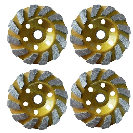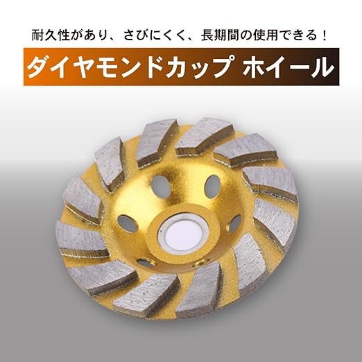 【お得な4個セット】ディスクグラインダーに取り付けて使用するダイヤモンドカップホイールの4個セットです。このホイールは、さまざまな素材の表面を磨き上げ、滑らかな仕上がりを実現します。ご家庭でのDIYプロジェクトからプロの現場作業まで、多岐にわたる用途に対応しています。ダイヤモンドチップを配合しているため、非常に耐久性があり、さびにくく、長期間の使用が可能です。