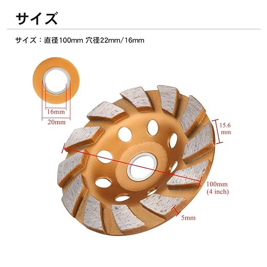 ダイヤモンドカップ ホイール 直径100mm 穴径16mm/22mm ダイヤモンドカップサンダー ディスクグラインダー 研削 研磨 モルタル コンクリート タイル レンガ 4個セット | KAZESHOP