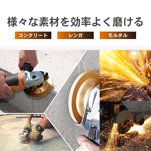 【高品質のダイヤモンド粒子を使用】ダイヤモンドカップサンダーは、コンクリートやモルタル、タイル、レンガ、瓦などの素材を効率よく磨くのに最適です。また、金属のバリ取りやガーデニングでの花壇整備など、さまざまな作業で威力を発揮します。高品質のダイヤモンド粒子を使用しており、長時間にわたる使用でも摩耗が少なく、耐久性が保証されています。