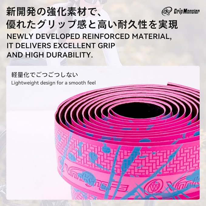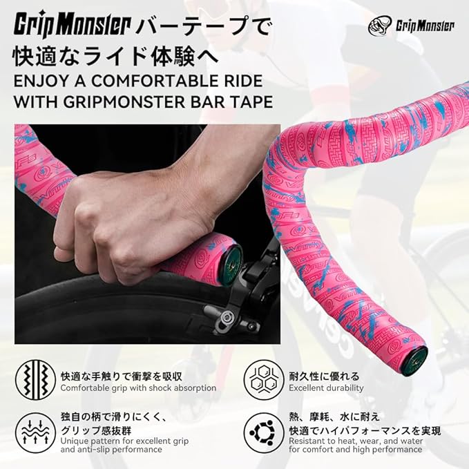 【簡単取り付け】 高品質の両面テープにより、ハンドルに巻きやすくなり、巻いた表面も美しく整います。バーエンドテープとエンドキャップも付属していますので末端の処理も簡単です。初めての方でも手軽に取り付け可能です。【ご注意】バーテープを取り付けた後は、必ずしっかり固定されているかご確認ください。取り付けが不十分な場合、走行中に外れる恐れがあり危険です。