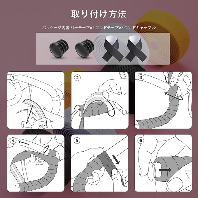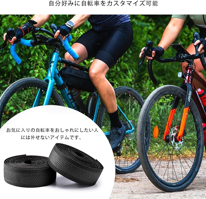 【幅広く応用】パッケージ内容:バーテープ 2 エンドテープ 2 エンドキャップ 2 一般の自転車、ロードバイク、クロスバイク、マウンテンバイク、BMXバイク、ベビーカー、車のステアリングホイール、釣り竿などに適しています。自転車用ハンドルが滑り止めほしい方には最適です。