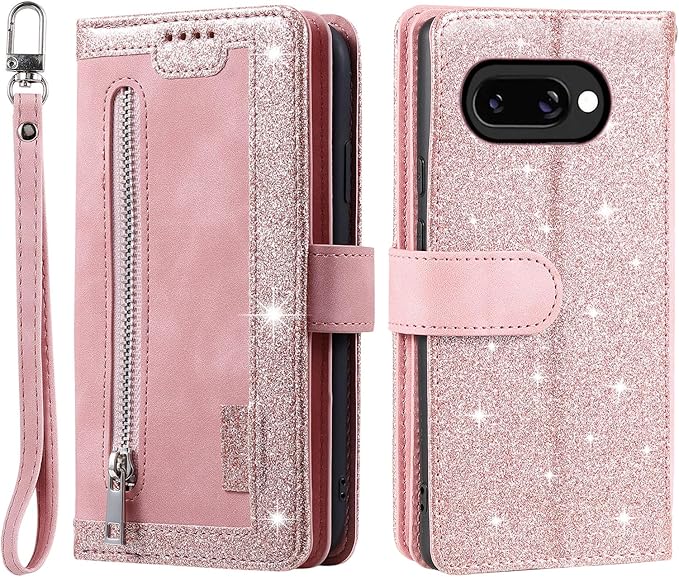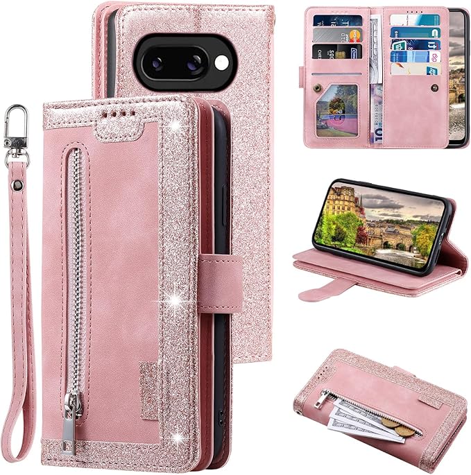 EYZUTAK 手帳型ケース Google Pixel 9a、レトロマット 9カード収納 ホルダー ジッパーポケット電話ケース 財布型 耐衝撃 ケース PU革 磁気クロージャーキックスタンドリストストラップフォリオフリップ 携帯カバ - ローズゴールド | KAZESHOP