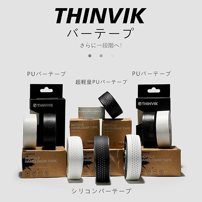 Thinvik 自転車 シリコン バーテープ ショック吸収 シリコン+EVA製 滑り止め 汚れ防止 自転車用ハンドルテープ 再利用可能 簡単お手入れ ロードバイク&グラベルバイク用 厚さ3mm | KAZESHOP
