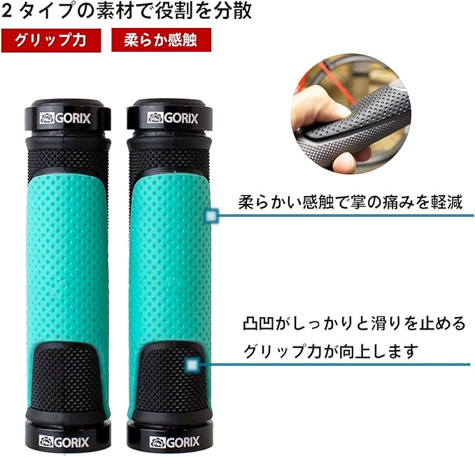 定番の形をした自転車グリップ。クロスバイクなどのフラットハンドルに取付できます。