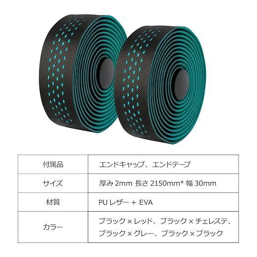 【商品内容】バーテープ 【付属品】エンドキャップ、エンドテープ 【サイズ】厚み2mm 長さ2150mm*幅30mm 【素材】PUレザー+ EVA