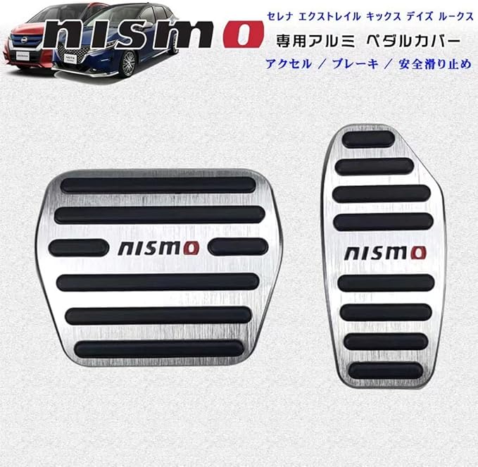 高級感のある、2ピースのアルミ製ペダル。NISMO(ニスモ) 車オルガン式ペダル採用車に適合します。アルミペダル(アクセルペダルカバー、ブレーキペダルカバー)の2ピースセットです。