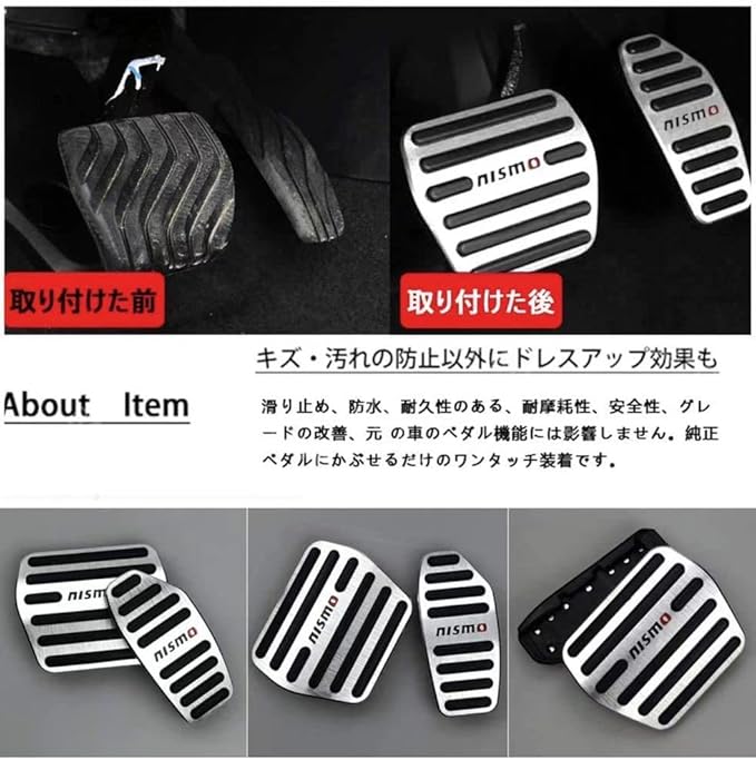 セット内容は:アクセルペダルカバー、ブレーキペダルカバー