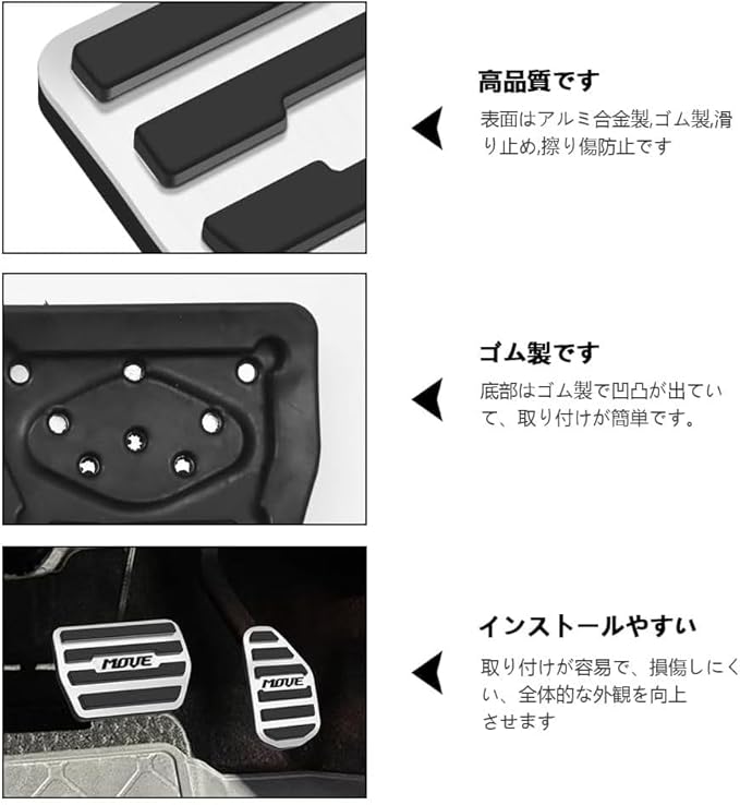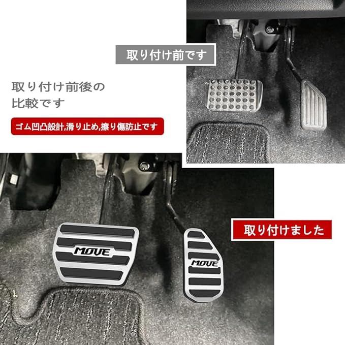 ▶【安全運転】: 新型 ムーヴ ペダル カバー アルミ合金とゴム製。オリジナルのペダルにユニークな外観をもたらします。独自の滑り止め表面により、優れたパフォーマンスとしっかりとしたグリップが得られます。足の疲れを軽減し、運転の安全を確保します。原点ペダルに直接クランプ。接触面積を拡大