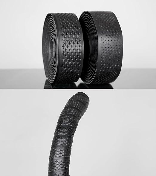 バーテープ表面には耐摩耗性に優れたポリウレタン、裏面には衝撃吸収性の高いEVA素材を採用し、長期間快適に使用できるバーテープです。高グリップ素材により、雨や汗で濡れても滑りにくく、安定したハンドリングを実現。さらに、適度な伸縮性があるため、巻きやすくフィット感も抜群です。 厚さ2.6mmの設計により、優れたクッション性を発揮。振動吸収力が高く、グラベルなどの悪路や長時間のライドでも手の疲れを軽減します。高品質な台湾製で、精密な製造技術により仕上げられた信頼の一品。スタイリッシュなブラックカラーで、どんなバイクにもマッチします。快適性とパフォーマンスを両立するバーテープで、ワンランク上のライドを楽しみましょう。 また、表面には凹凸やエンボス加工が施されており、手の滑りを防ぐことで、雨天時や汗をかいた状態でもしっかりとハンドルを握ることが可能。さらに、バーテープは自転車の見た目を大きく左右する重要なパーツのひとつ。パターンを選べる仕様になっているため、自分の好みに合わせたカスタマイズを楽しめます。機能性とデザイン性を兼ね備えたバーテープで、より快適でスタイリッシュなライドを実現しましょう。