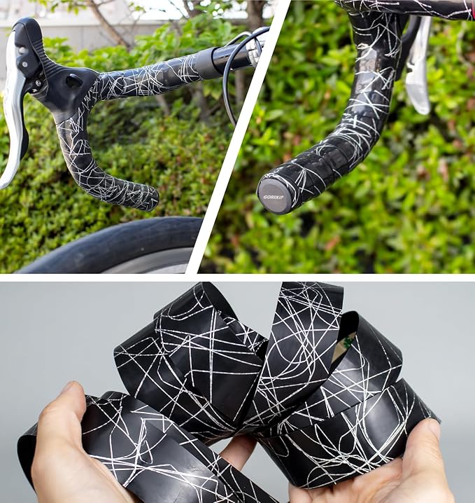 GORIX(ゴリックス)ロードバイク バーテープ 自転車 3mm 厚め 耐久性とクッション性 アート柄 反射デザイン (GLITTER) ブラック ハンドルテープ 滑り止めテープ カスタム ハンドルテープ おしゃれ | KAZESHOP