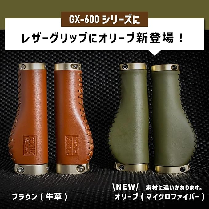 GORIX(ゴリックス) 自転車 革 レザー グリップ (GX-600) エルゴ ダブルロックオン 茶色 ブラウン サイクル 牛革 ネジ固定 交換 おしゃれ クロスバイク ミニベロ ハンドル | KAZESHOP