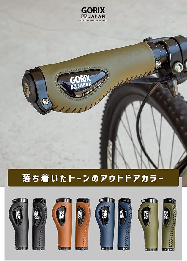 [人気カラーの4色展開]人気の定番カラーブラックとブラウン、そして新たにアウトドア感溢れるオリーブ、ブルーを追加!オリーブとブルーは最近人気のキャップ感あるカラートーンです。他にあまりないカラーなのでおすすめです!シンプルでカジュアル、そてて実用的なおしゃれ自転車グリップです。ネジ固定式なので取り換えも簡単なので自転車カスタマイズの第一歩にも最適です。