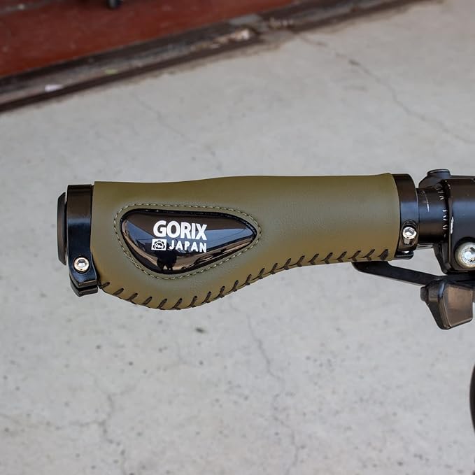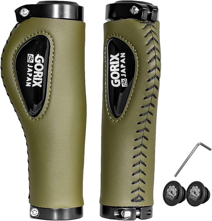 GORIX(ゴリックス) 自転車用レザーグリップ シリコンクッションパッド付き エルゴデザイン [ ロックオン 握りやすい エルゴ グリップ ] (GX-501) 柔らかい 衝撃吸収 ダブルロックオン固定 おしゃれ ハンドルグリップ クロスバイク ミニベロ | KAZESHOP