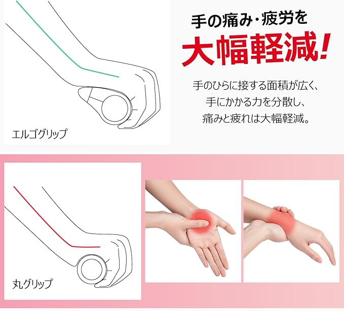 【手の痛み・疲労を大幅軽減!】 人間工学に基づいて設計により、長時間の走行時に起こる指のしびれ、手や腕の痛みを防ぎます。